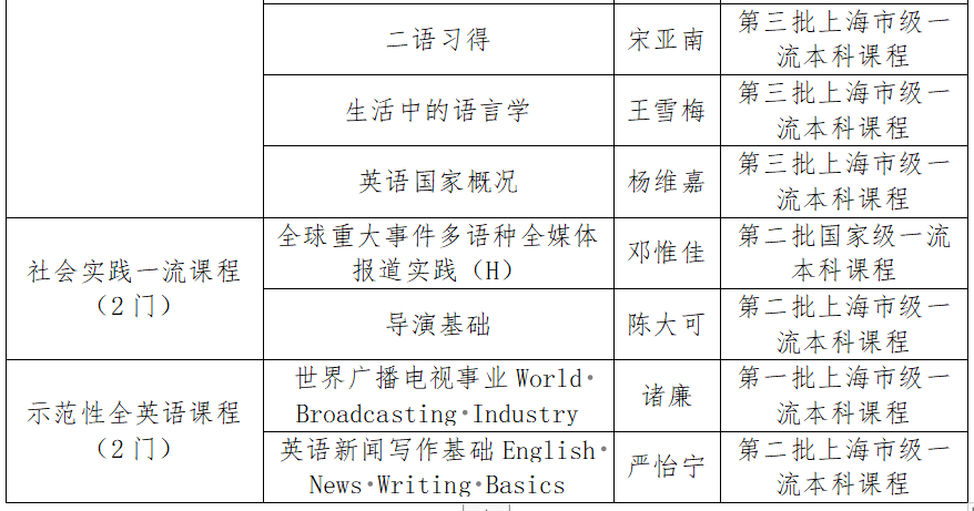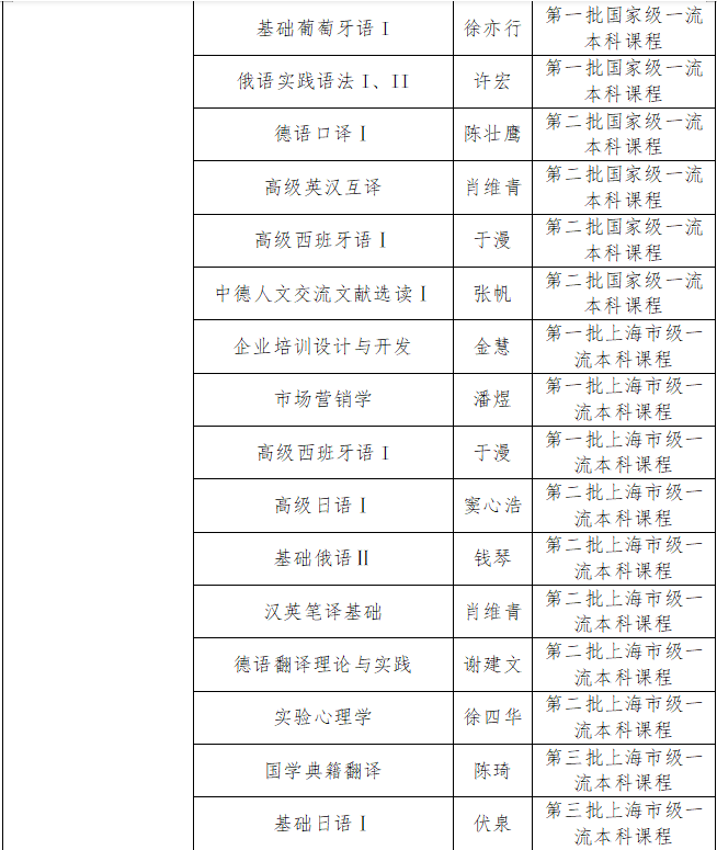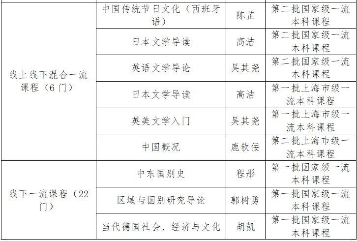近日,教育部发布《教育部关于公布第二批国家级一流本科课程认定结果的通知》(教高函〔2023〕7 号),上海外国语大学共有15课程入选,其中线上一流课程7门、线上线下混合式一流课程3门、线下一流课程4门、社会实践一流课程1门。学校本次入选课程门数比上一批入选门数有大幅增加,并在线上线下混合和社会实践两个类别实现了零的突破。