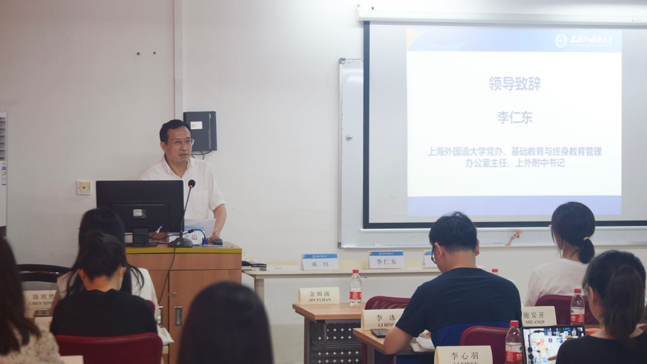 开班典礼上,上外基础教育与终身教育管理办公室主任李仁东向参加研修的老师们表示欢迎。他指出,参训老师是学校的外语学科骨干,希望通过研修,老师们在知识、业务上有收获,同时积极与同行交流互动,形成上外基础教育合力。