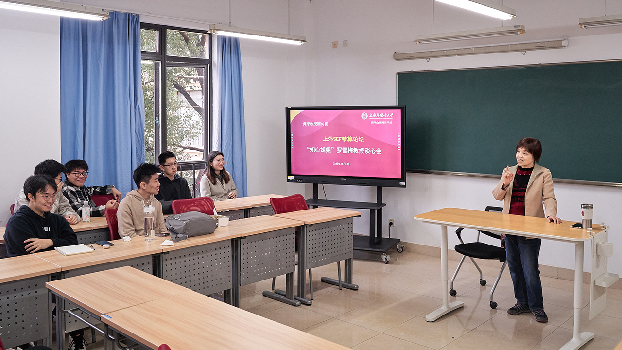 2023年11月10日,上外SEF精算论坛举办了第一期资深教授面对面活动。活动邀请到上海外国语大学国际金融贸易学院罗雪梅教授与同学们交流谈心。本次谈心会由精算学系罗华教授主持,邓佩云老师列席,来自精算、金融、大数据等多个专业的同学踊跃参加,活动现场气氛轻松热烈。