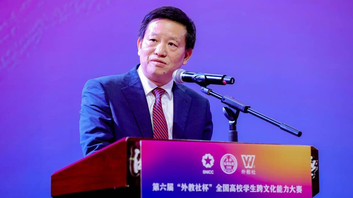 教育部原副部长、中国教育国际交流协会刘利民通过视频致辞。他表示,“外教社杯”全国高校学生跨文化能力大赛以促进人才培养为导向,兼顾语言能力和跨文化能力考察,对于促进跨文化理念传播、营造跨文化学习氛围、推动跨文化教学、提高学生国际胜任力具有积极意义。希望同学们以本次活动为契机,在与队友和参赛选手的交流学习中,不断磨砺专业本领,深化文化认知,加强跨文化沟通能力,勇于担起新时代文化交流的使命,为加强文明交流互鉴、推动文明不断繁荣发展、构建人类命运共同体贡献更多青春力量。