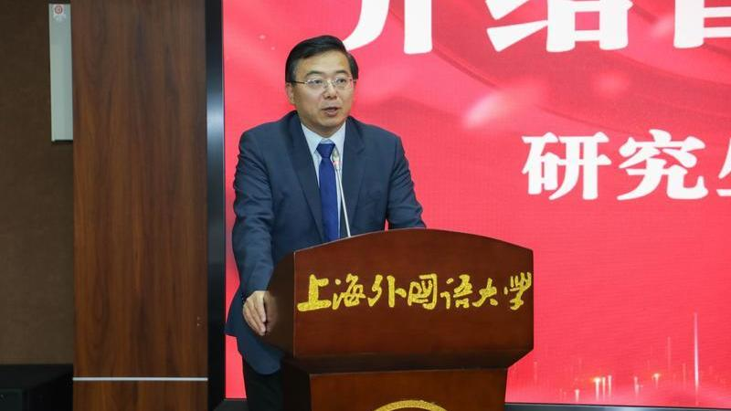 最后,副校长查明建为典礼致辞。他指出,一所大学办得好不好,最重要的标准在于人才培养,研究生教育是一所大学教育水平的最高体现。上外历来重视对研究生学术科研能力的培养,本次论文大赛既是对学校优良工作传统的传承与延续,也是在不断推进研究生教育高质量发展过程中的创新与探索。研究生培养的过程不仅是对专业领域的研究,也是培养问题意识、激发独立思考、涵养敬业精神的过程,更是不断健全人格、提升思想境界、砥砺人文品格与人文精神的过程。查副校长从自身治学经历出发,从“研究对象”“研究问题”“理论方法”三者之间的关系展开,与大家分享了人才培养中树立问题意识的重要性。他深情寄语年轻人“努力成为一个有人情温度、思想深度、文化高度、人民情怀的新一代知识分子”。