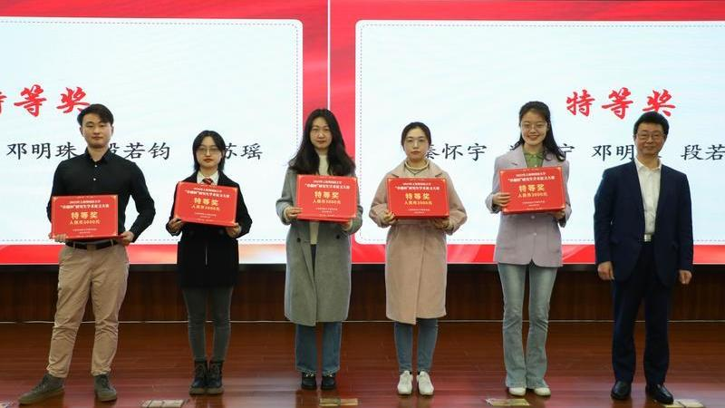 研究生院副院长江松宣读了获奖学生名单,本次共评出特等奖5篇、一等奖13篇、二等奖44篇。副校长查明建、研究生院院长陈壮鹰、教务处处长金慧、英语学院副院长孙会军、俄罗斯东欧中亚学院副院长钱琴、国际关系与公共事务学院副院长汤蓓分别为获奖同学颁奖。