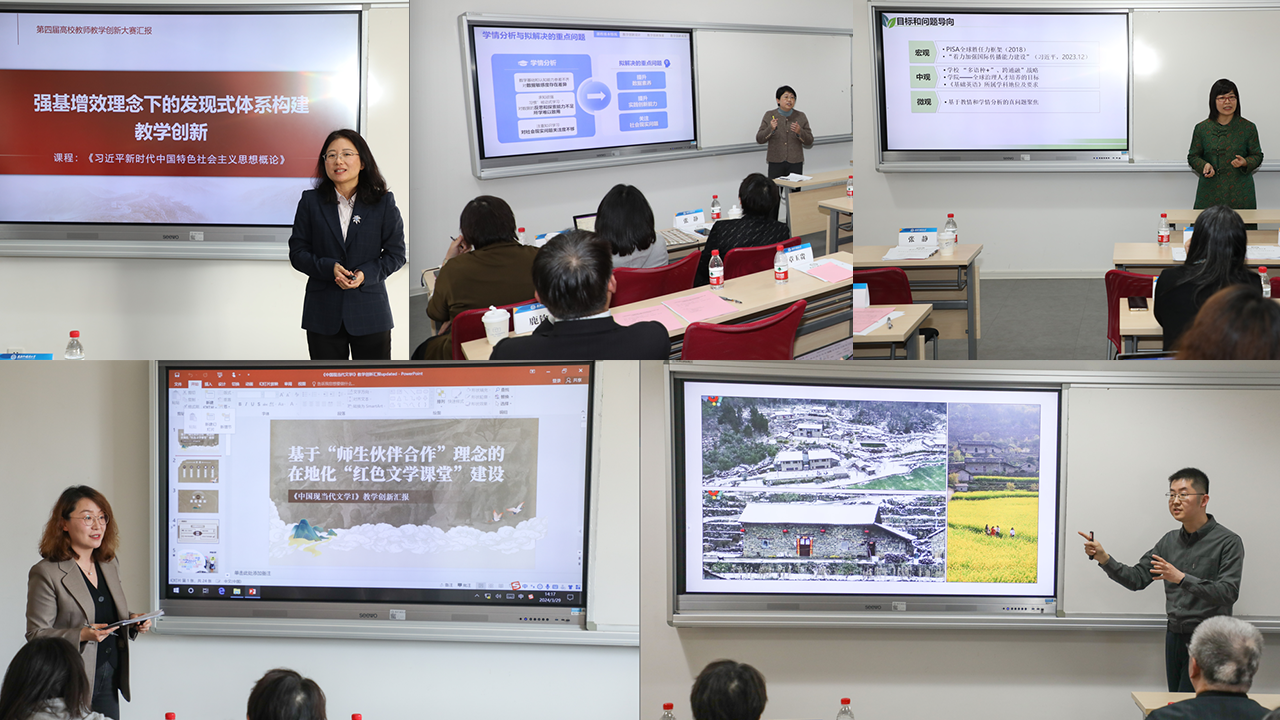 出征仪式后,来自新文科组、基础课程组、课程思政组和产教融合组的5位参赛教师分别进行了教学设计创新汇报,指导团队逐一进行了指导点评。教师发展中心主任皮凡倩出席活动,活动全程由教师发展中心常务副主任赵秋艳主持。