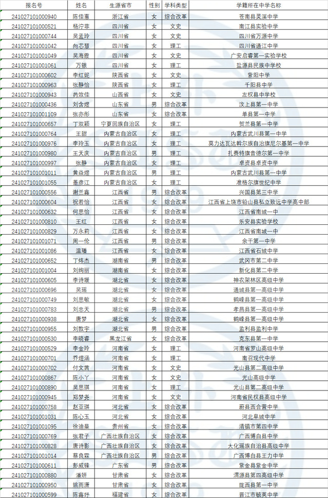 按照教育部有关文件要求,根据《2024年上海外国语大学高校专项计划招生简章》,我校组织专家对符合报名条件并按要求提交的有效报名材料进行严格审核,好中选优,审核结果经学校招生工作领导小组审议,确定了上海外国语大学2024年高校专项计划报名初审合格名单,现予公示: