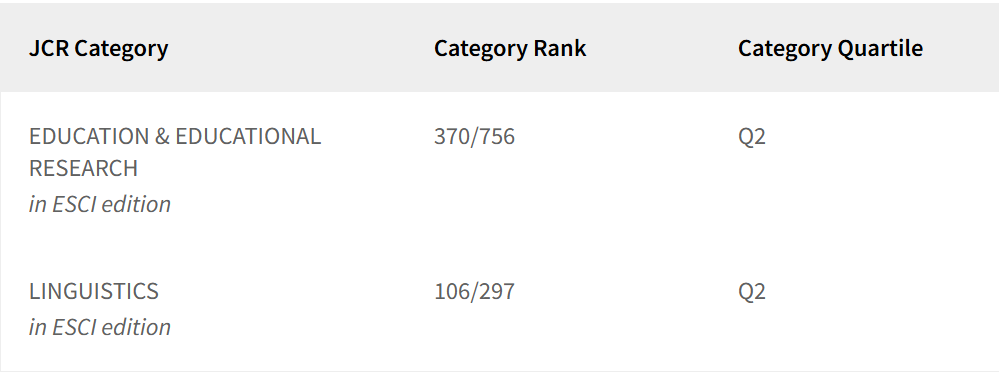 2024年6月,Web of Science正式发布了2023年度的Journal Citation Report(JCR),把属于不同数据库但属于同一学科的期刊统一进行SSCI影响因子和分区排名。由英语教育教学研究基地主办的期刊Language Teaching for Young Learners在语言学和教育学两个领域中均列入Q2区,国际影响再创新高。