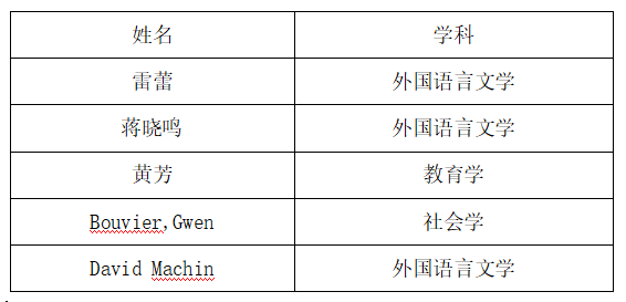 上海外国语大学共5位学者入选该榜单。其中雷蕾教授、Bouvier,Gwen教授、David Machin教授都来自语料库研究院;蒋晓鸣教授来自语言研究院;黄芳教授来自国际教育学院。