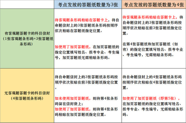 根据是否有答题卡,以及考点下发的答题纸数量,张贴条形码的逻辑如下: